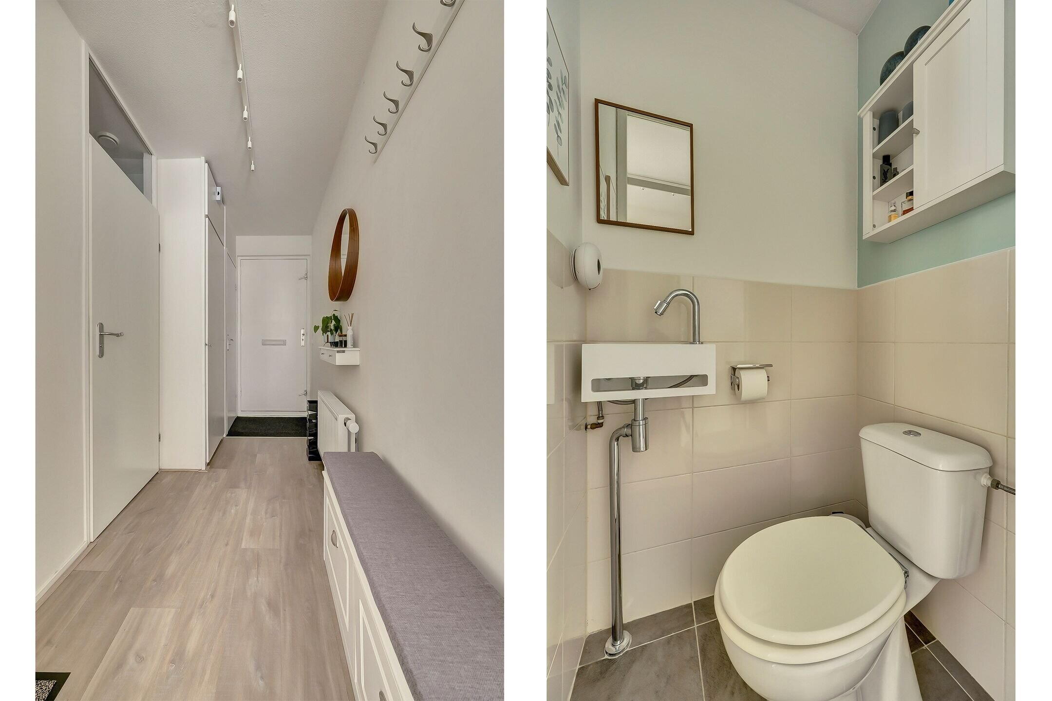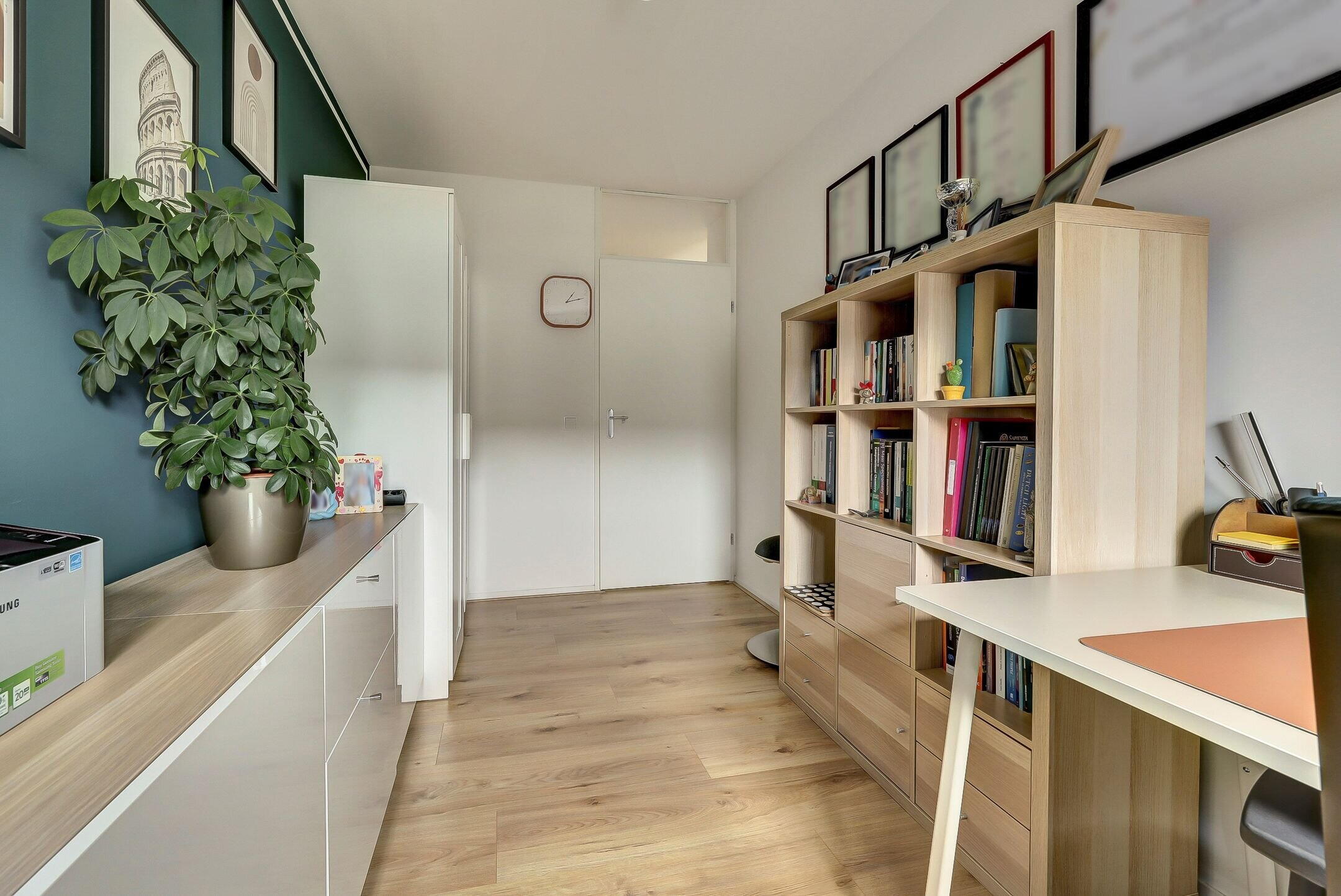 On the first floor, you’ll find three beautiful bedrooms, all neatly finished and surprisingly spacious. The bathroom is also nearly new and exudes pure luxury. In addition to the stylish walk-in shower and modern washbasin, there is a toilet with a Sanibroyeur system, a smart and practical feature not standard in these homes. This means you have a fully functional second toilet on the upper floor, significantly enhancing everyday comfort.