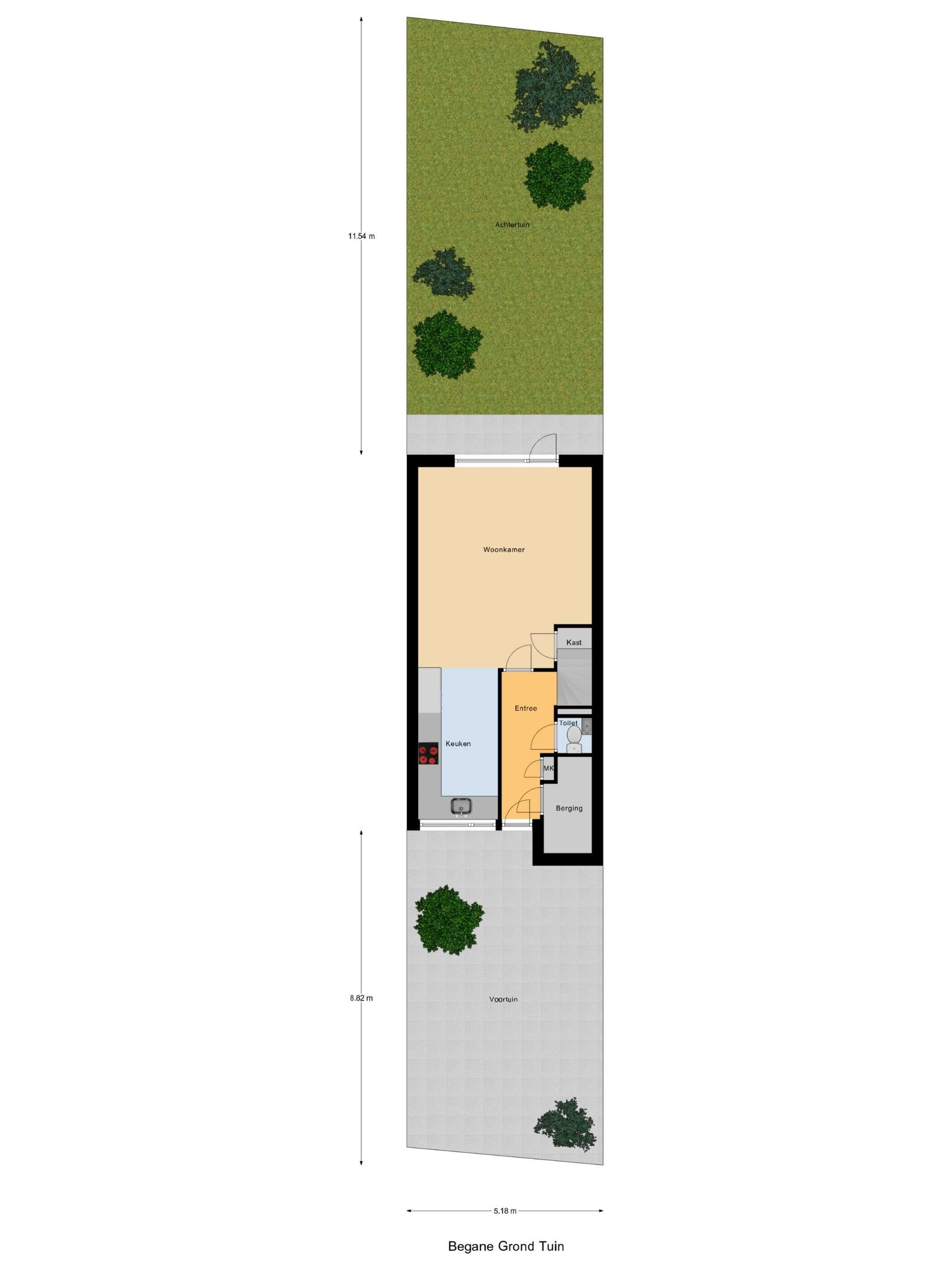 - 60 m² (11,54 meter diep en 5,18 meter breed)